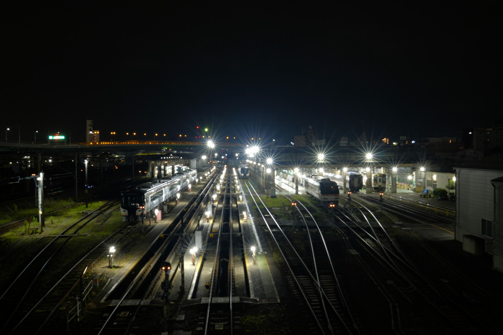 夜の名古屋車両区 カテゴリー 鉄 一部に架線があるので電車も留置。どれも光条を大きくしすぎてしまった。 HC85,キハ75… キハ85の数がどんどん減っている。... READ MORE 夜の名古屋車両区
