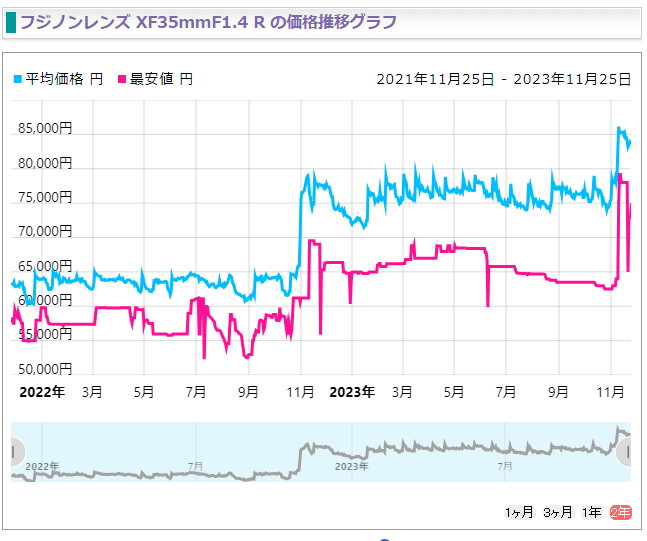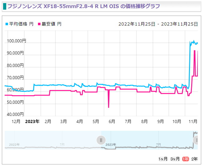 バナー広告で表示されるレンズの価格が異様に高くなっていたので調べてみたら、11月に価格改定されていた。