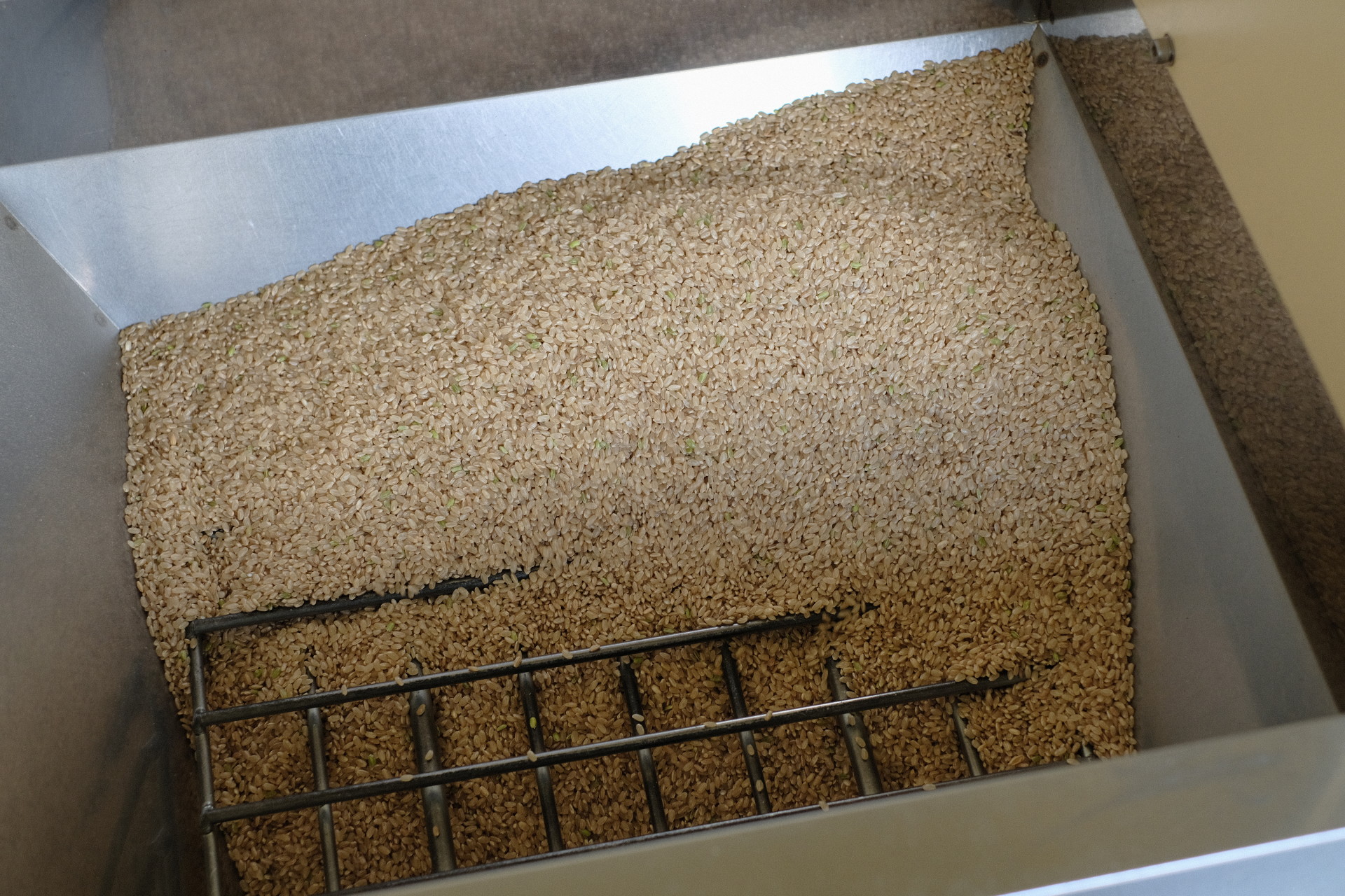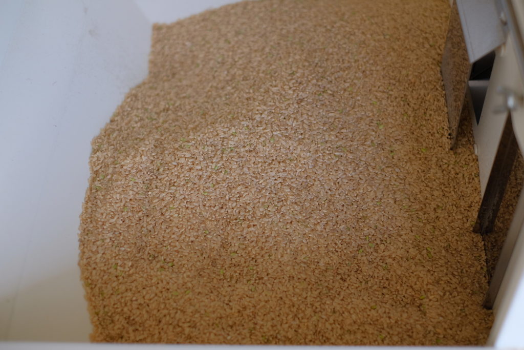 精米機ほど大きくない音とともに選別された玄米がパラパラと出てきた。