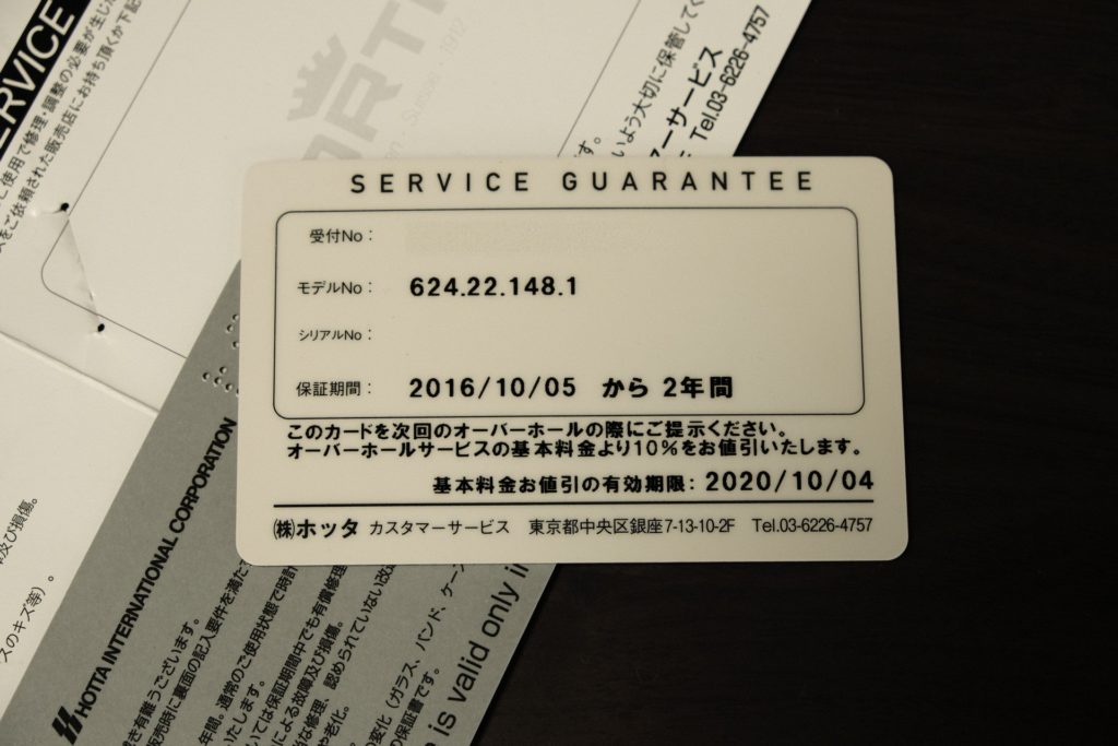 保証書が無いとオーバーホール代金が2倍になる。代理店へ依頼する際に保証書の提示は必須。
