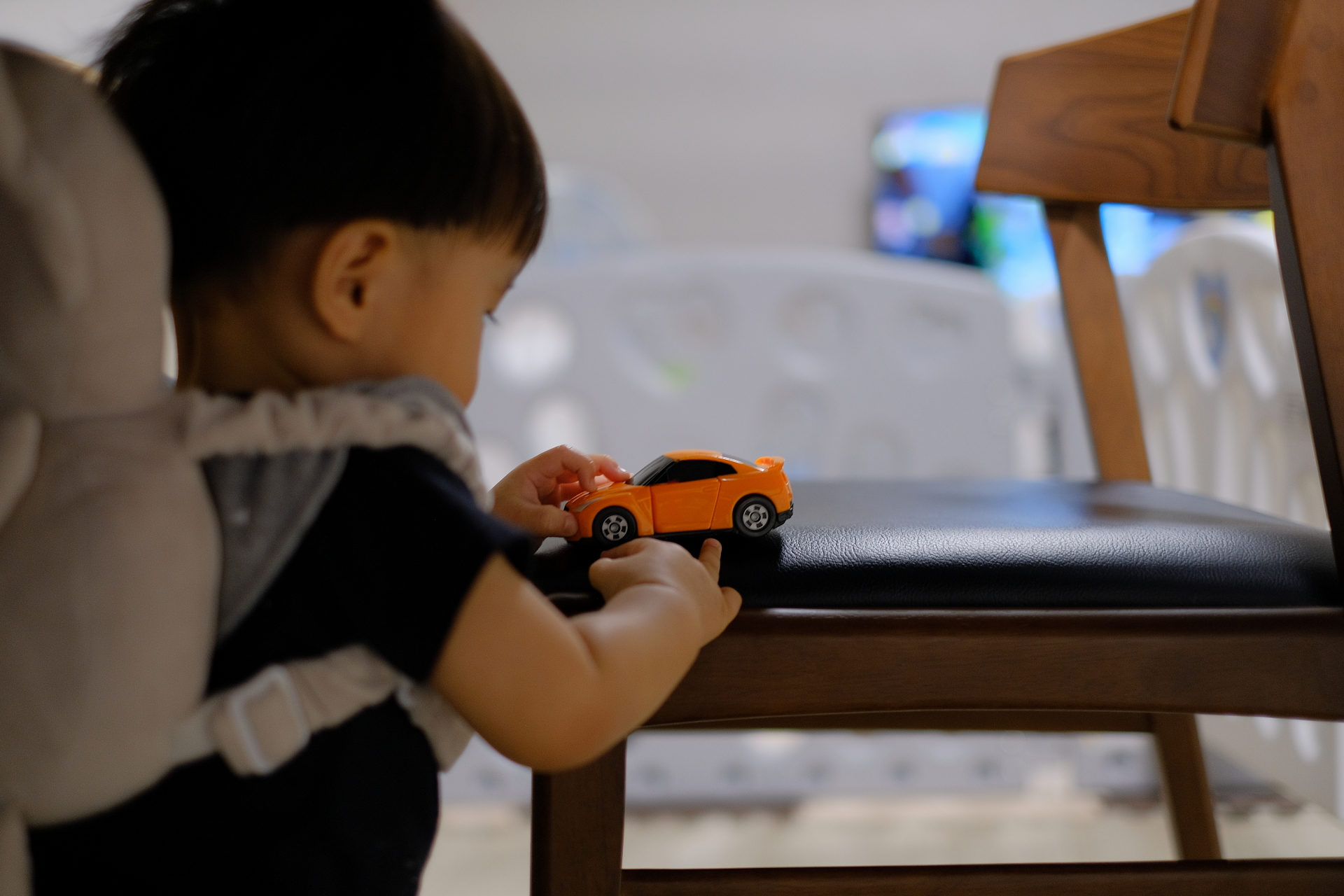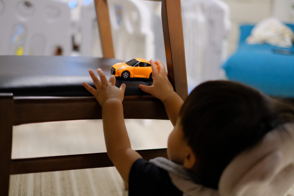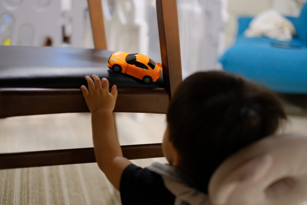 息子は、椅子の絶妙な位置に駐車を試みていた。