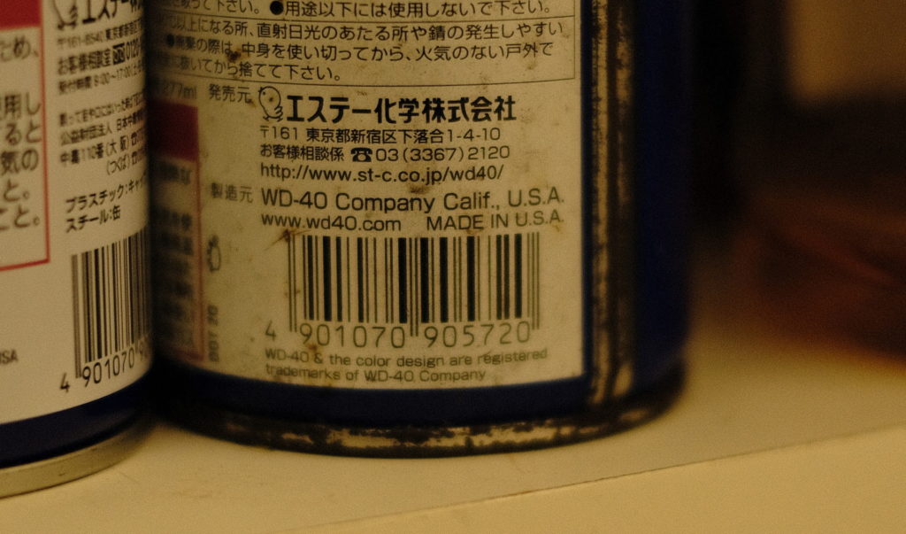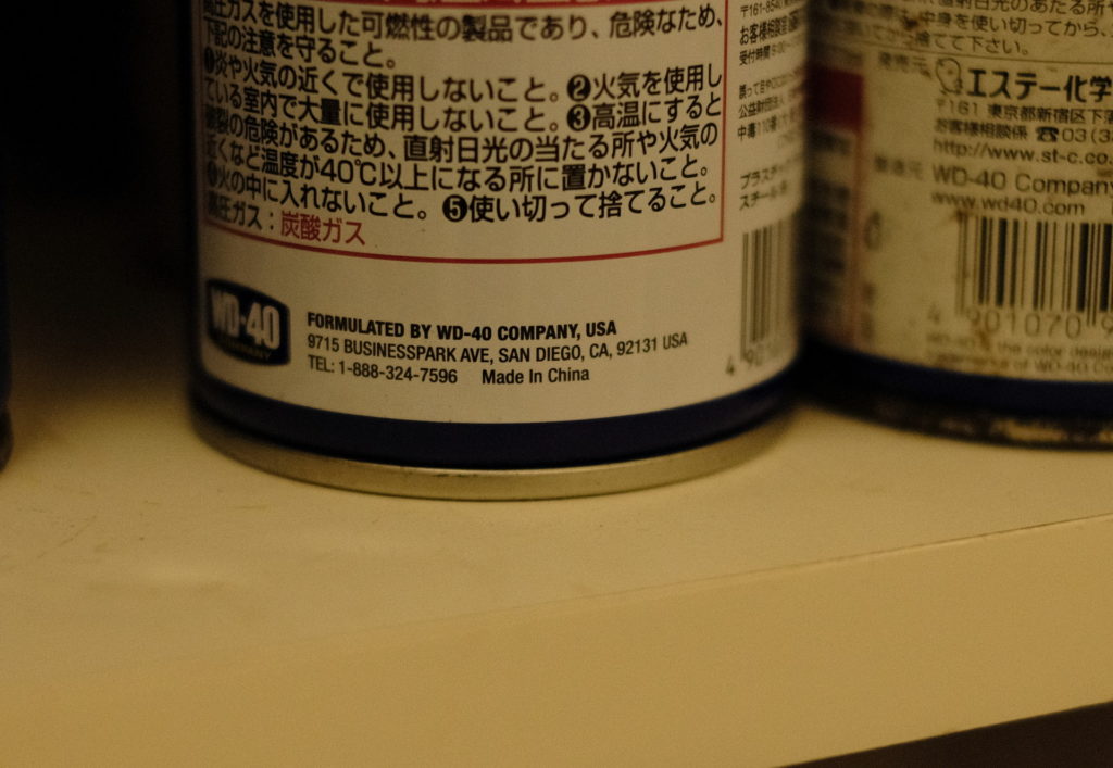ホーム > 車庫 WD-40 エンジンカー時代から愛用している潤滑スプレー。 なんかデザインが変わったなと思っていた。まじまじ見てみると新しいものはMADE IN CHINAになっていた。 WD-40在庫品 我が家の在庫。どれも中身は入っている。 MADE IN USA MADE IN CHINA 78ml , MADE IN USA レアなミニ缶。 カテゴリー:車庫 前の投稿 祝福 次の投稿 お盆前洗車