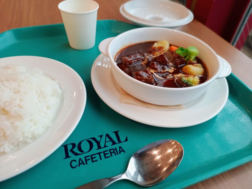 そこには当時大きなレストランがあった。トレーを一人ずつ取ってレールのようなカウンターを滑らせながらジャンルごとに定められた場所でオーダーをするスタイル。サラダや総菜はガラス越しに準備されていたが、熱い料理はオーダーが入り次第、奥の厨房でシェフが調理して提供する。私はたいていビーフシチューを頼んでいた記憶がある。