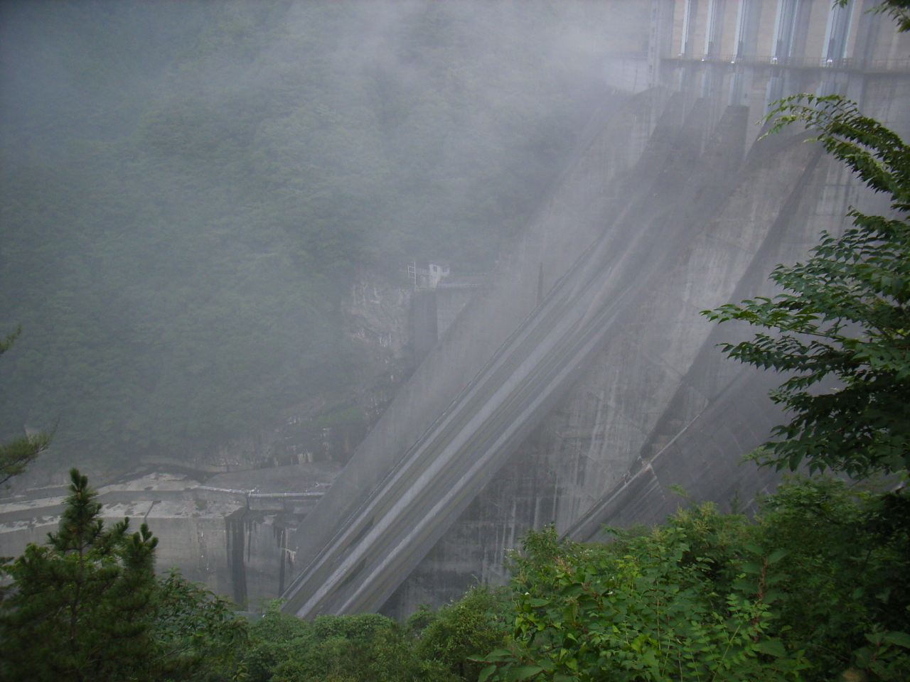 ホーム > ダム巡り 佐久間ダム(’08) 左岸を愛知県、右岸を静岡県に位置する由緒正しきコンクリート式ダム。 付近には佐久間周波数変換所もあり、一帯は電源地帯となっている。 佐久間ダム展望台から望むレトロな取水塔が特徴的青い文字。電源開発のダムということをしめしている明け方に到着。その後、水窪・佐久間を徘徊し、昼頃改めて訪問した。ゲート「サー」っという水の音が一帯を支配。無影灯?のようなものがあるパワフルさを感じる。正面は佐久間電力館霧に包まれ、荘厳さを感じたしっかりと夜が明けてくるとみるみるうちに霧は消える佐久間電力館も開館前改めて正午すぎに訪問。水車が鎮座している。 カテゴリー:ダム巡り 前の投稿 木瀬ダム(’08) 次の投稿 水窪ダム(’08)