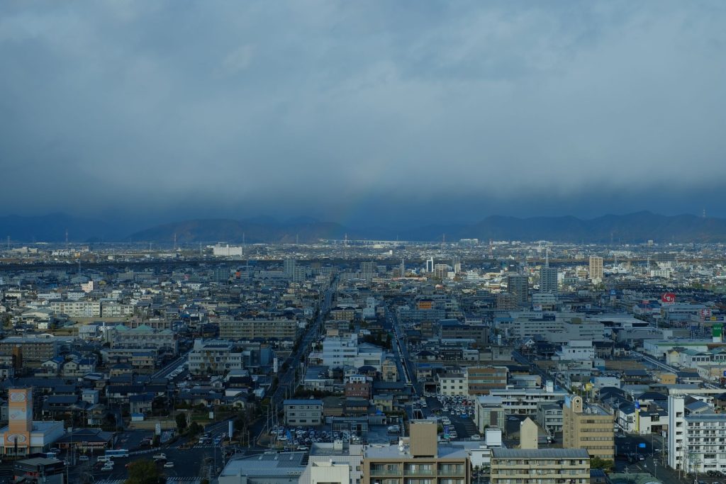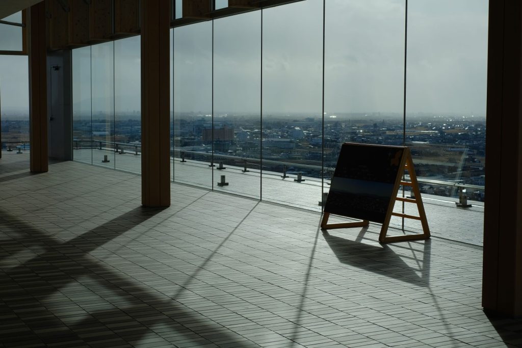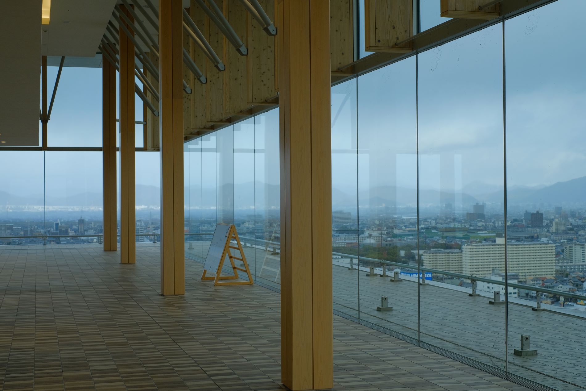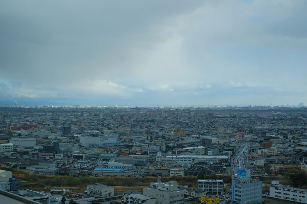 東西南北360度すべてガラス張りで濃尾平野を一望できる。