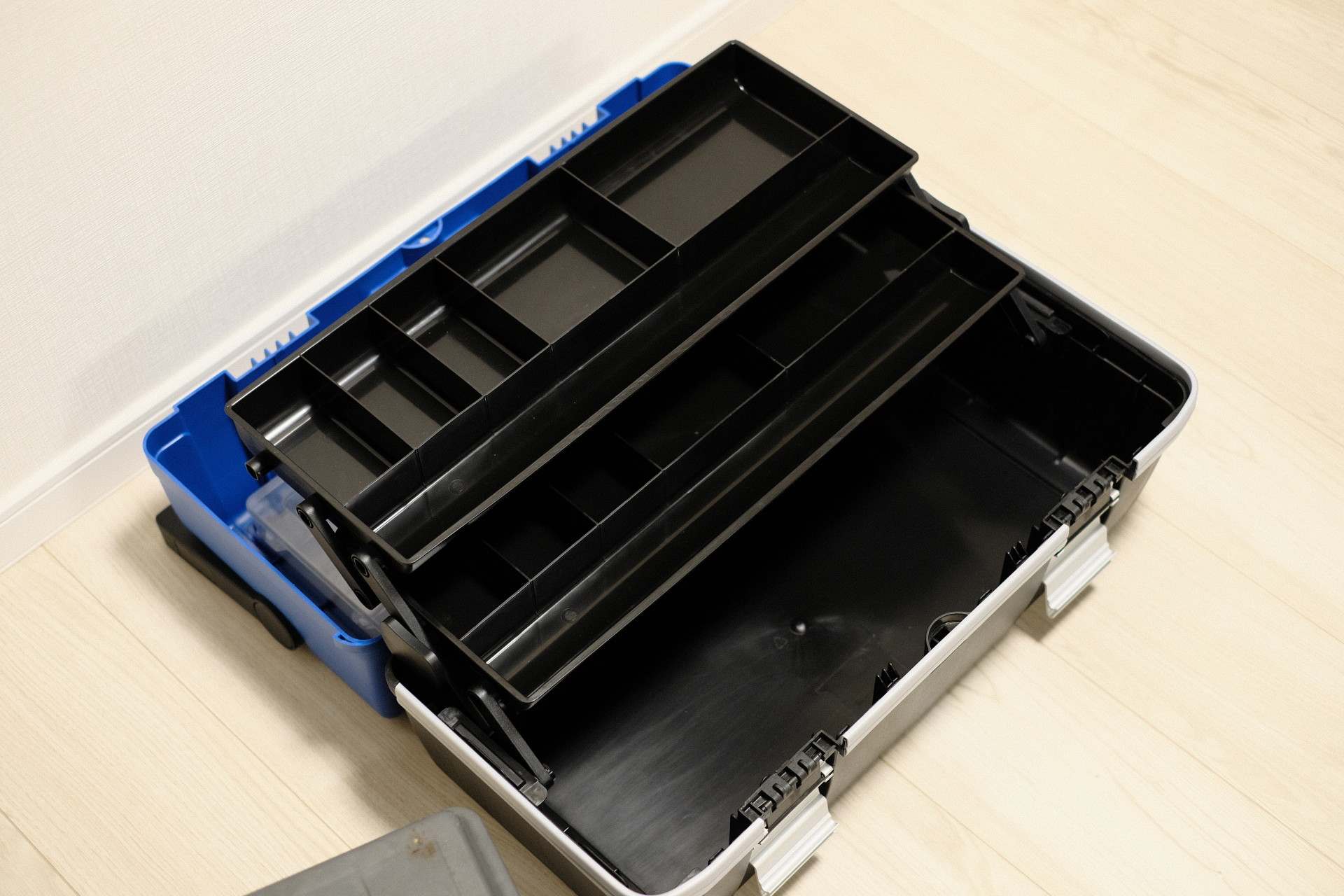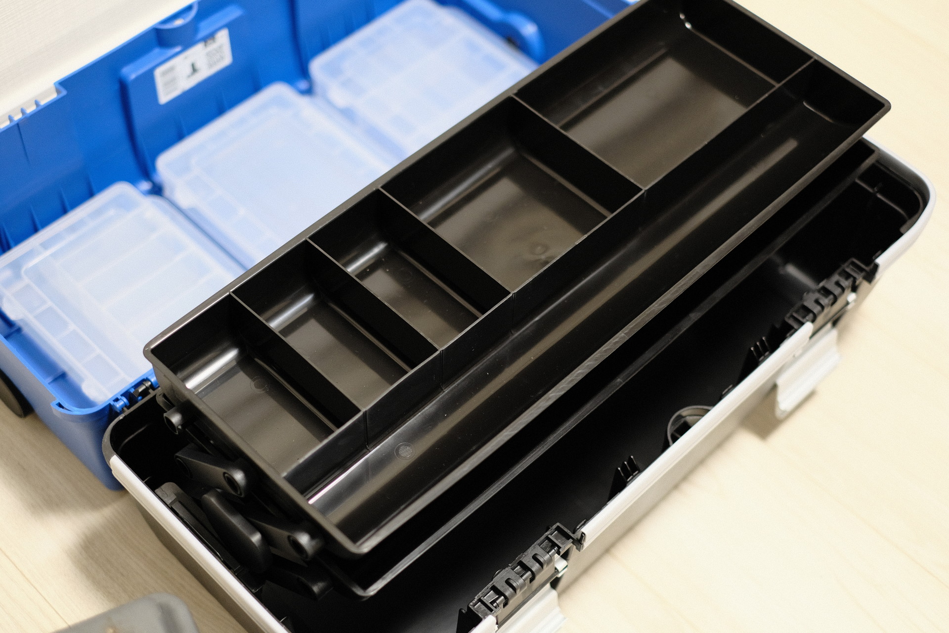 トレーは2段式、いくつかの区画に分かれている。この区画の塩梅が購入に至ったポイントの一つだった。