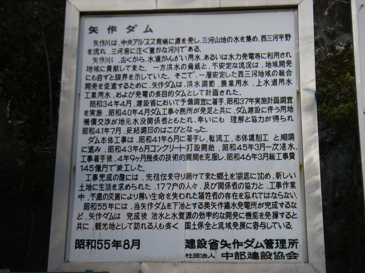 ホーム > ダム巡り 矢作ダム(’06) 左岸を愛知県、右岸を岐阜県に位置するアーチダム。 付近は快走路。走り屋もいるところ。到着。回ったな…。公衆電話ボックスが雰囲気を作っている。頭文字Dの榛名のようだ。昭和の金掛けた感のあるこういうの、好きだ。 カテゴリー:ダム巡り 前の投稿 大井ダム(’06) 次の投稿 3S-GE