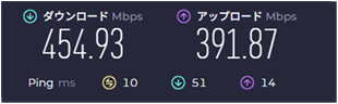 親機を1Fのリビングのテレビ真横、2Fの寝室にあるデスクトップPCで速度測定した。