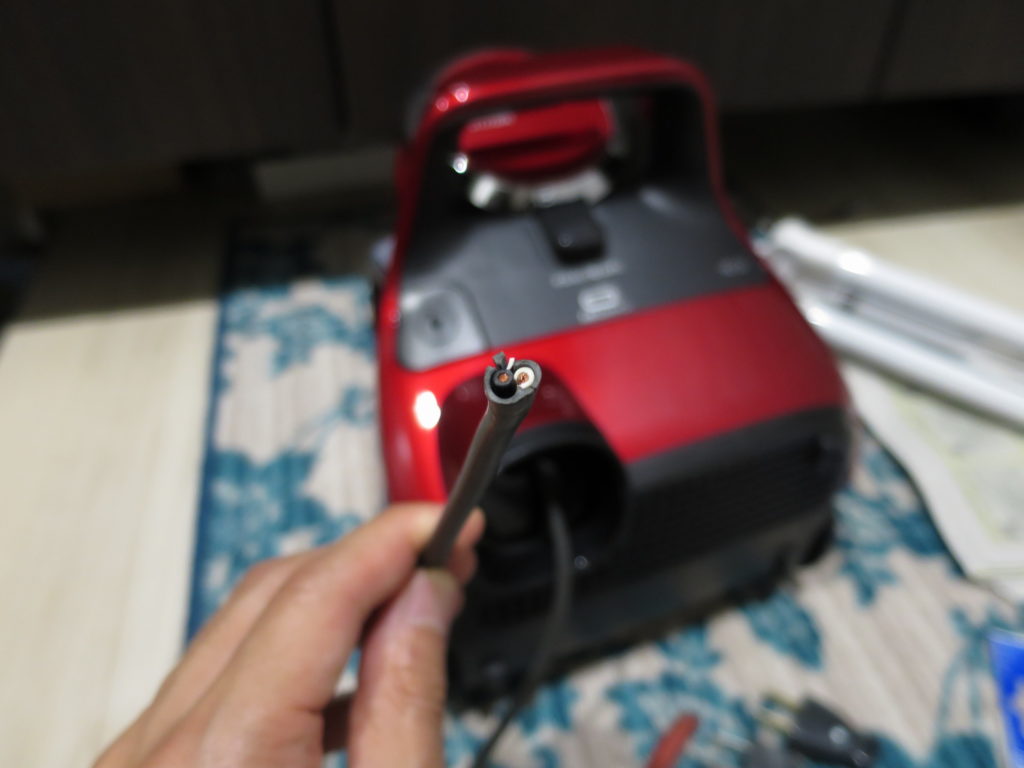 掃除機(東芝・VC-C6)のプラグが痛んで熱を持つようになった。内部断線っぽいので修理。