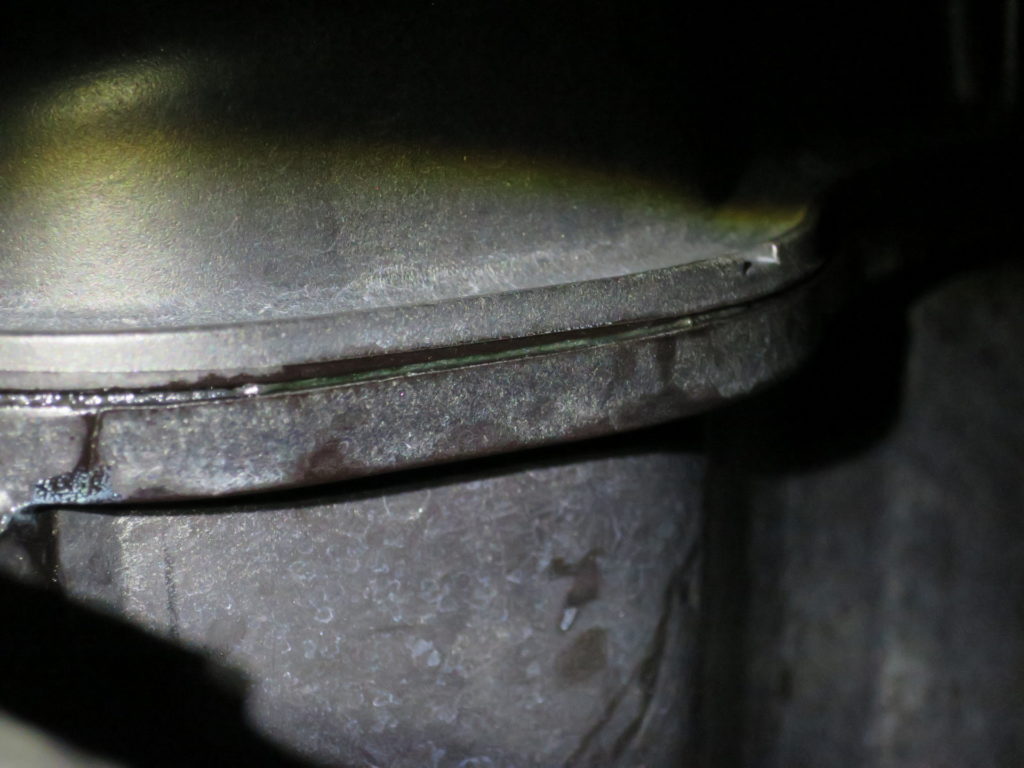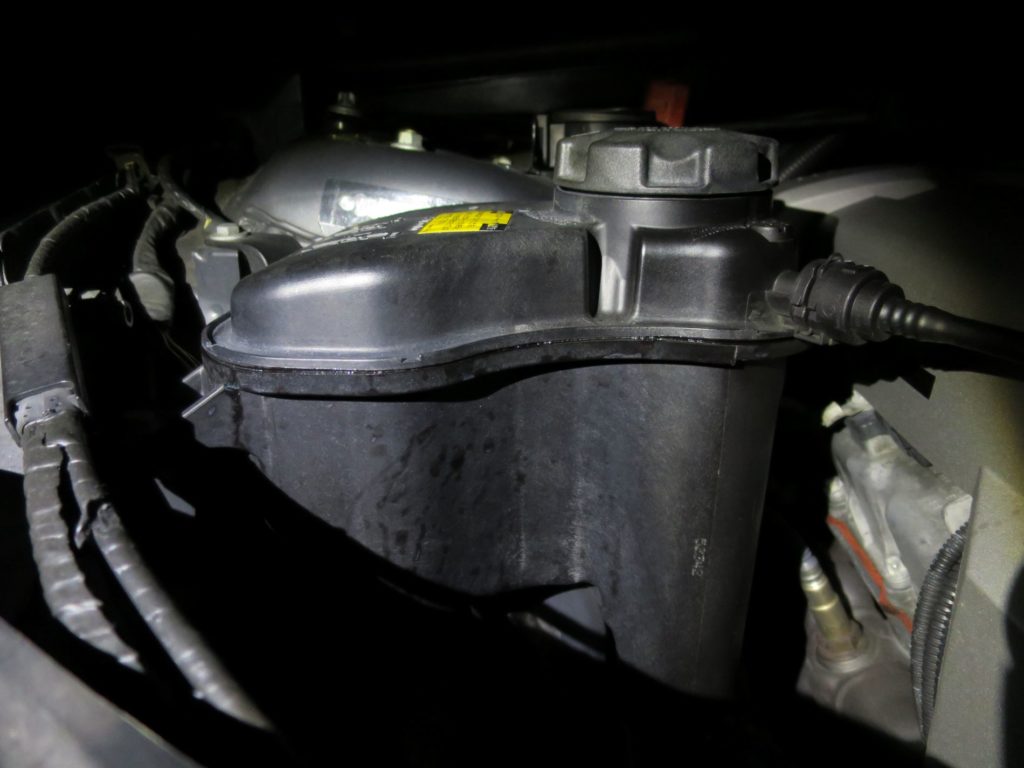 つなぎ目を確認すると嫌な感じで全周から滲みだしているような気がする。10年目の時にラジエター、EWP、ホース類を交換したがタンクは20年選手。交換だ。