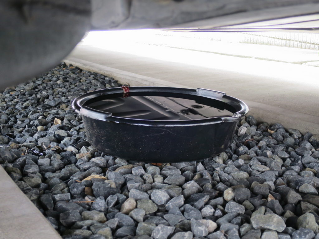 フィルターハウジングとフィラー双方から新油を少々流し込み、洗い流すイメージで排出。
