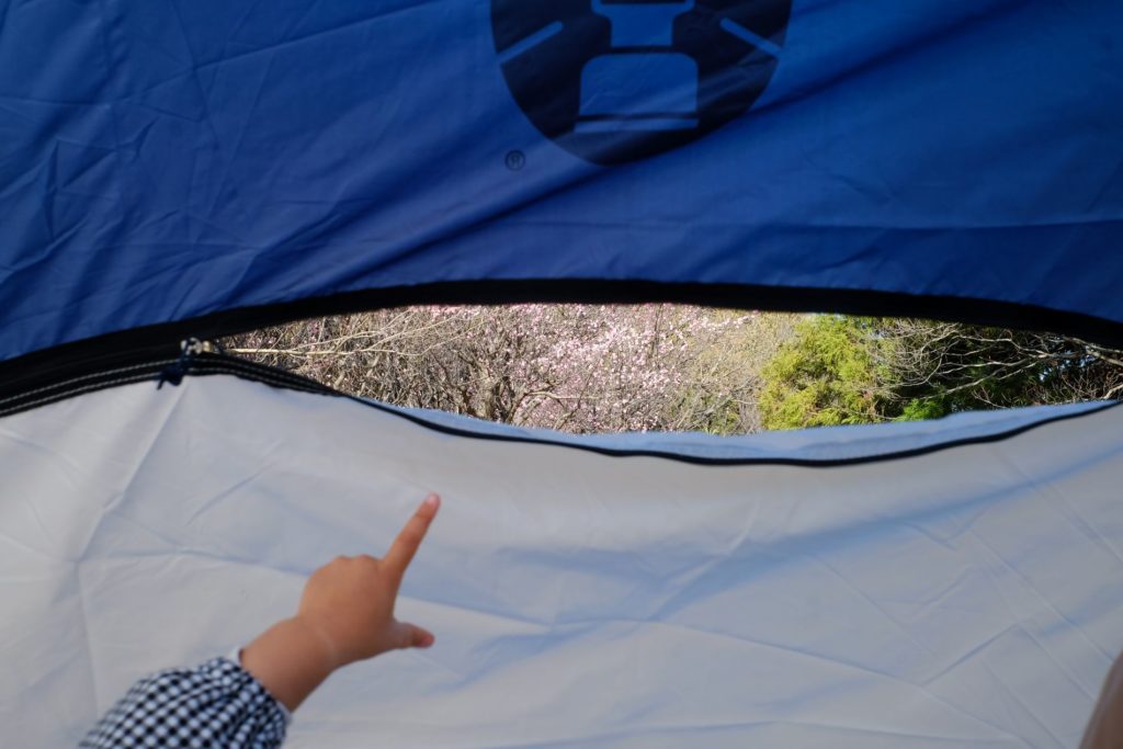 暖かくなってしまい(冬生まれの私)、張ったテントからさくらが見えるようになった。
