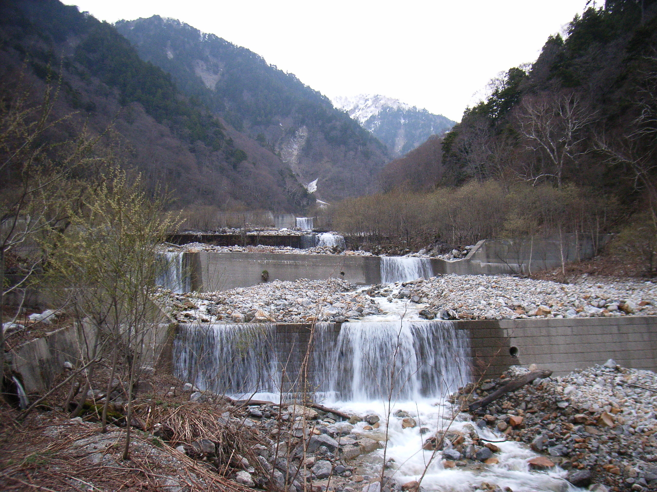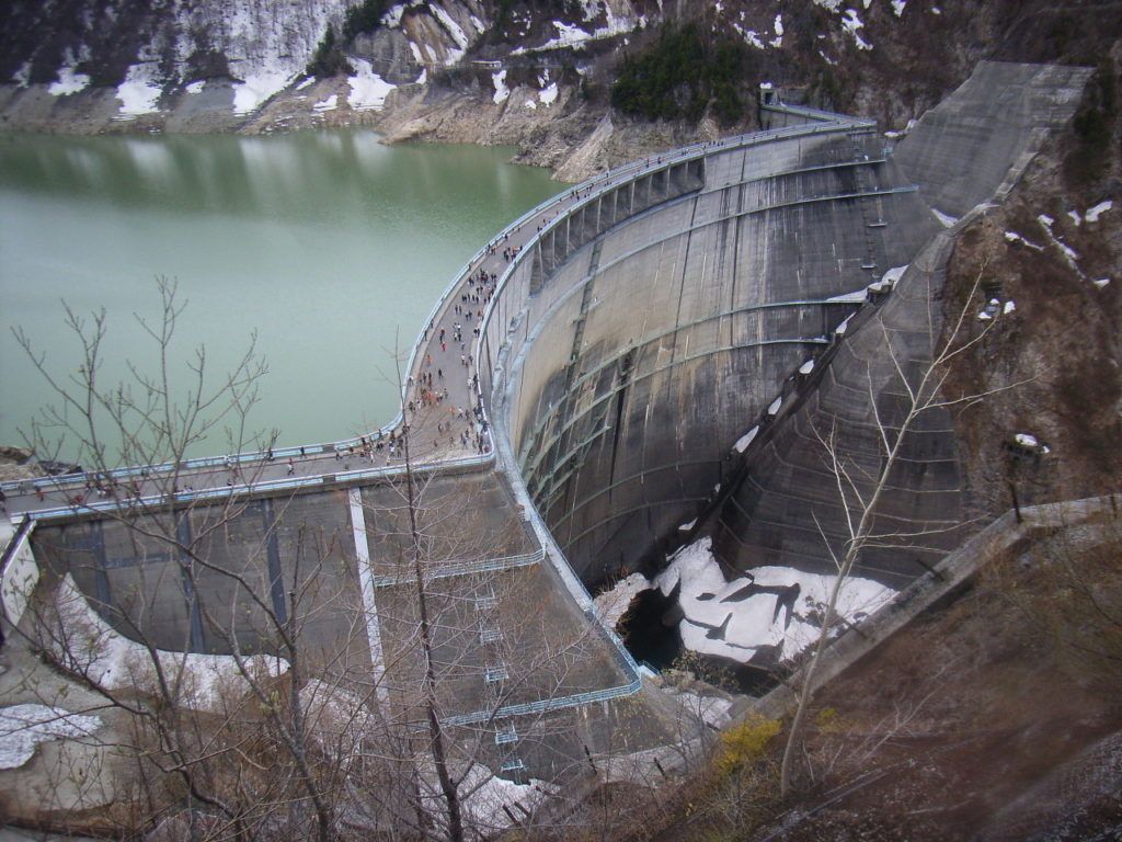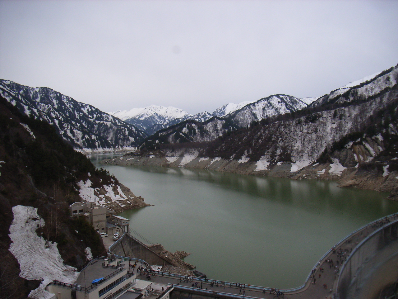 いろいろなところから雪解け水が流れ、ダム湖にそそいでいた。