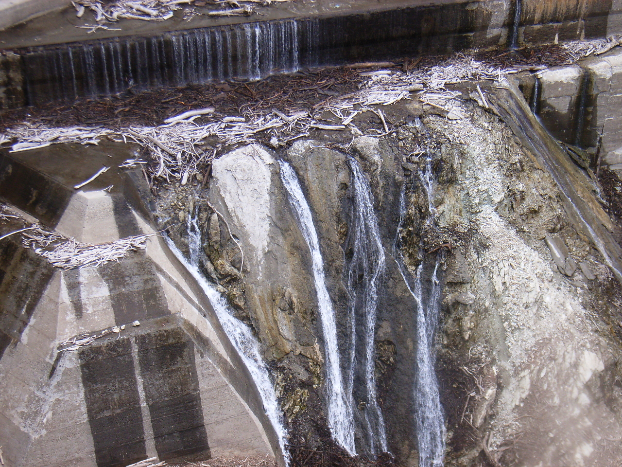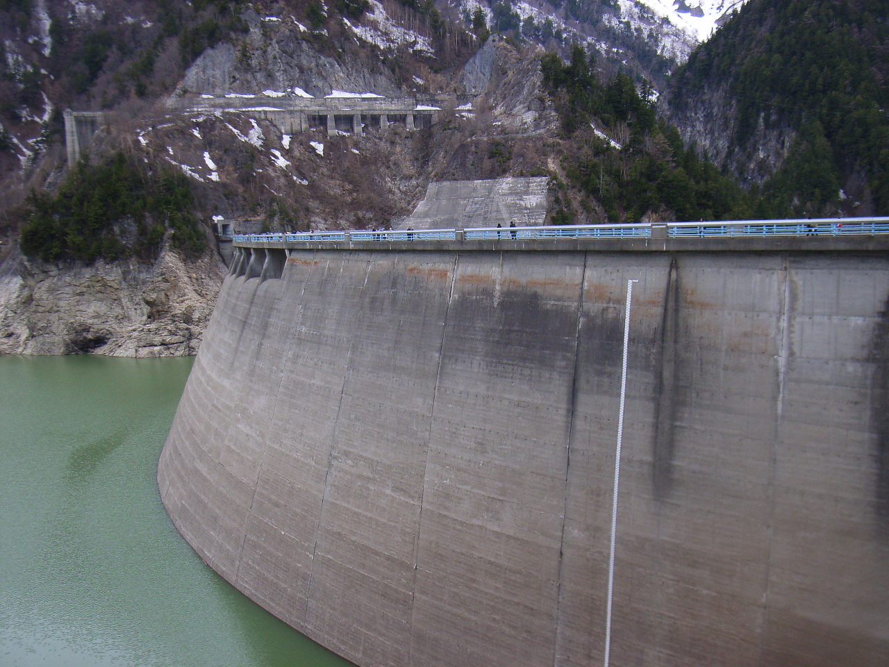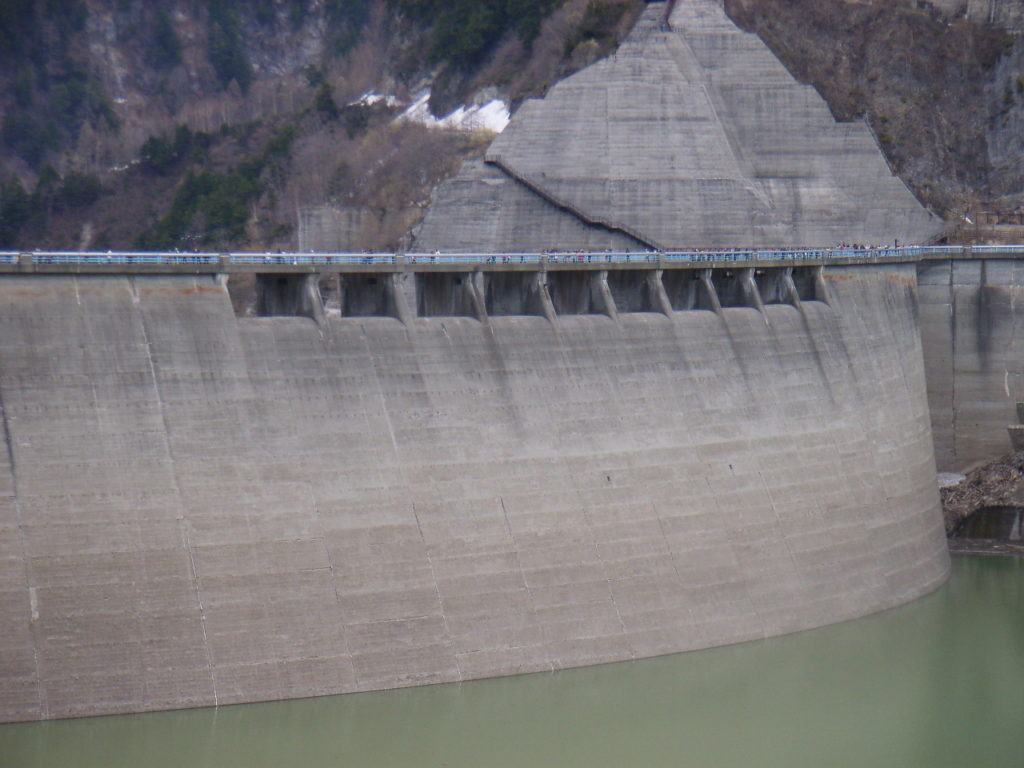 いろいろなところから雪解け水が流れ、ダム湖にそそいでいた。