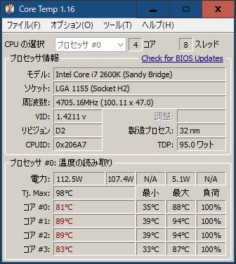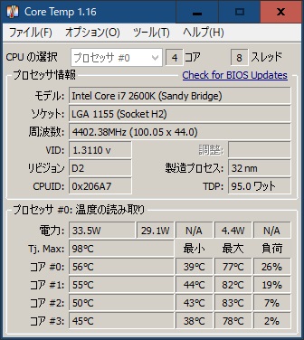 CPUグリスの再塗布とケースファンの増設、おそらくどちらも効果があったのだと思うけど、グリスの塗りなおしが大きかったのではないかと感じている。