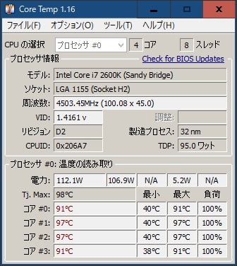 マザーボード交換前は4.4GHzで運用していた。80度台だったはず…