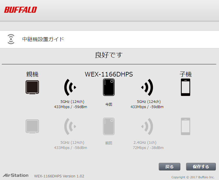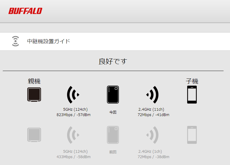 今回の製品は親機と子機の電波強度を分かりやすく表示してくれる「中継器設置ガイド」たる機能がある。