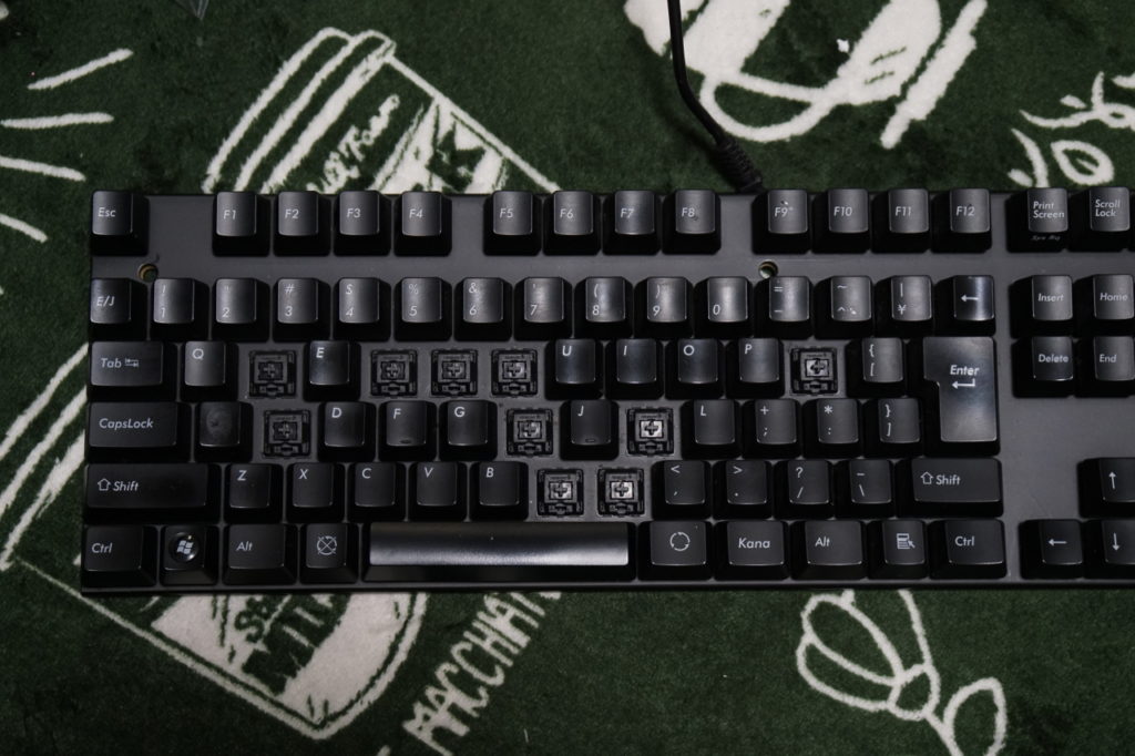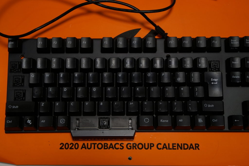 最近、黒軸で重さを感じるようになっていたので赤軸を主体とすることによってストレスのないタイピングを実現させ、なおかつメカニカルらしさをも楽しめるよう青軸をテンキーに配置、補助的に軽く押し込めば良い程度のキーに銀軸を盛り込むという贅沢な仕様に仕上がった。