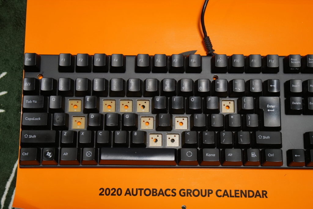 キートップの印字が欠けつつある10年選手のこのキーボード、まだまだこの先も使っていくことになる(無刻印だけど交換用キートップも在庫に備えている)。