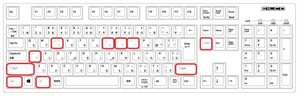 テンキーの数字キーも