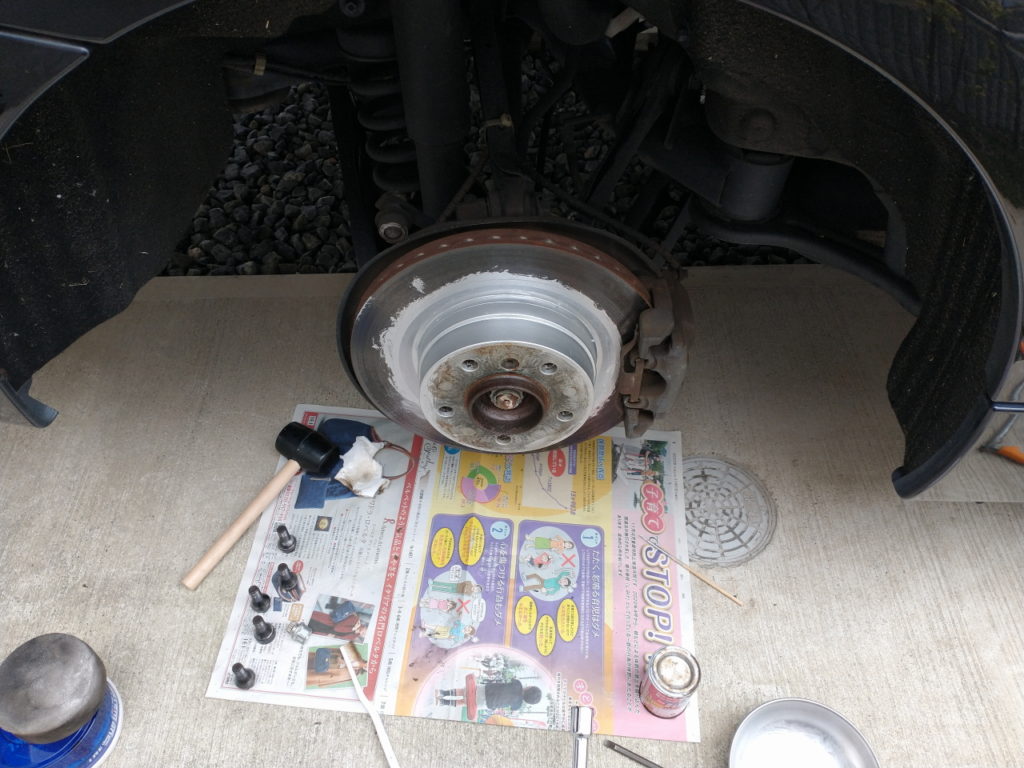 ローターとハブまわりの錆を落とし、ハブには防錆ケミカルを塗布した。
