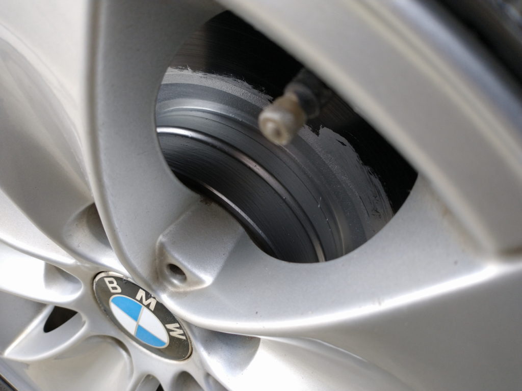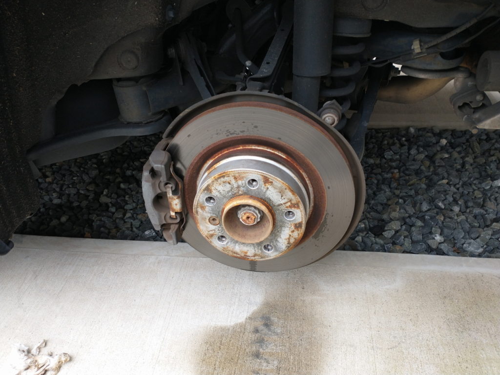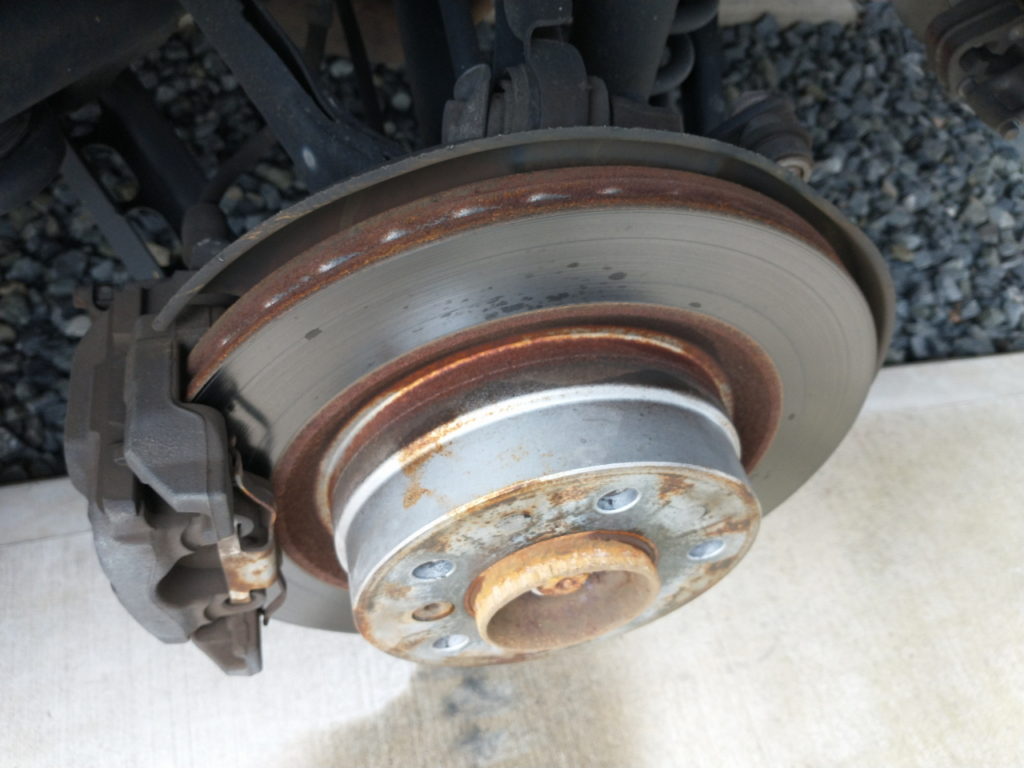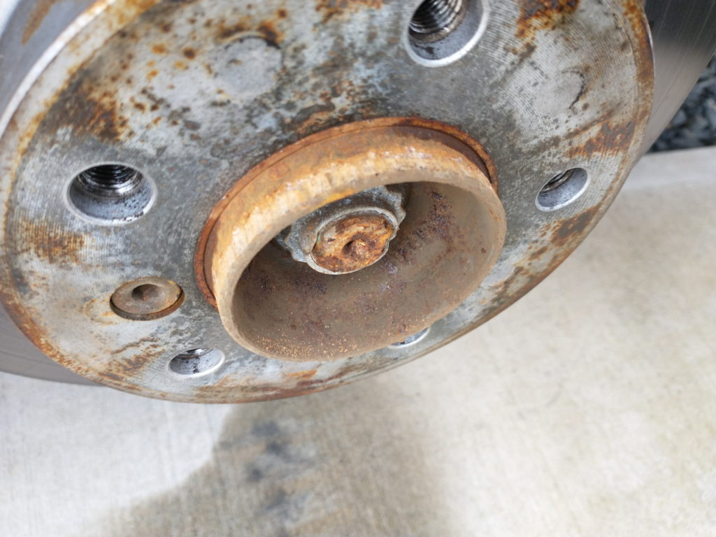 漆黒のホイールボルトに加えてローターにも錆が浮いている。