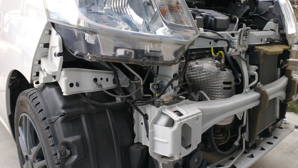 (写真は右側;バンパー取付後、エンジンルーム内から視認)