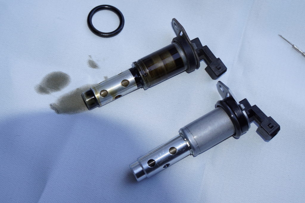 しかし、それでもチェックランプが消えることはなかったので、OBDからエラーコードを読み込むと、「VANOSソレノイド」の異常が記録されていた。VANOSを制御するための油圧コントロールがうまくできなくなればバルブタイミングが適切でなくなり、エラーを拾うのは頷ける気もする。