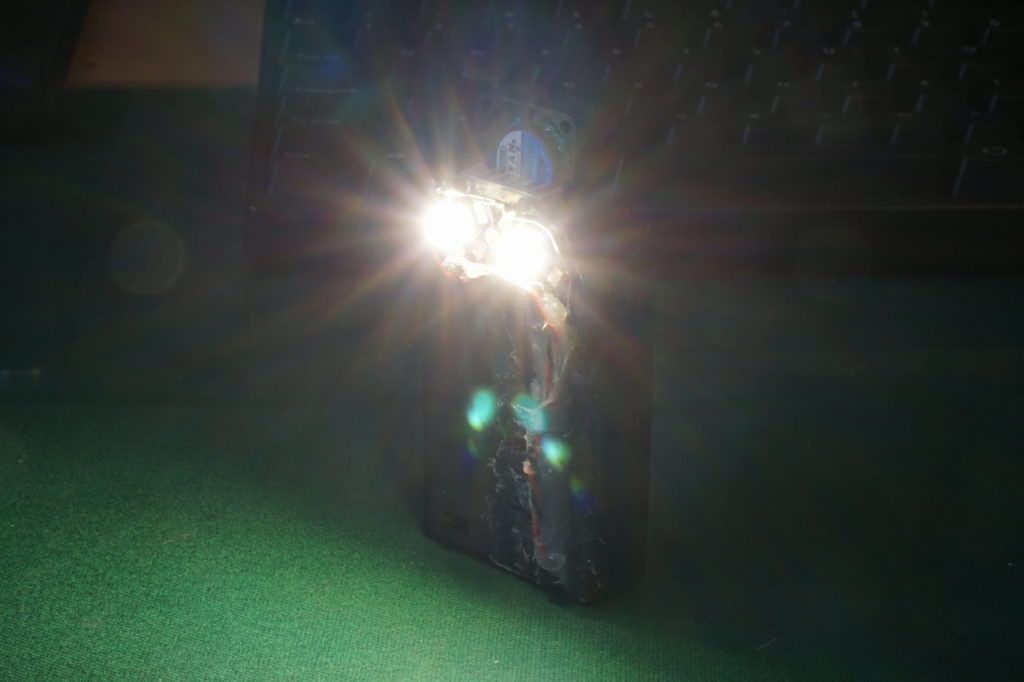 バルコニーのセンサーライトだけでは明るさが不十分だったので、自作LEDライト「ひかりくん」が大活躍。