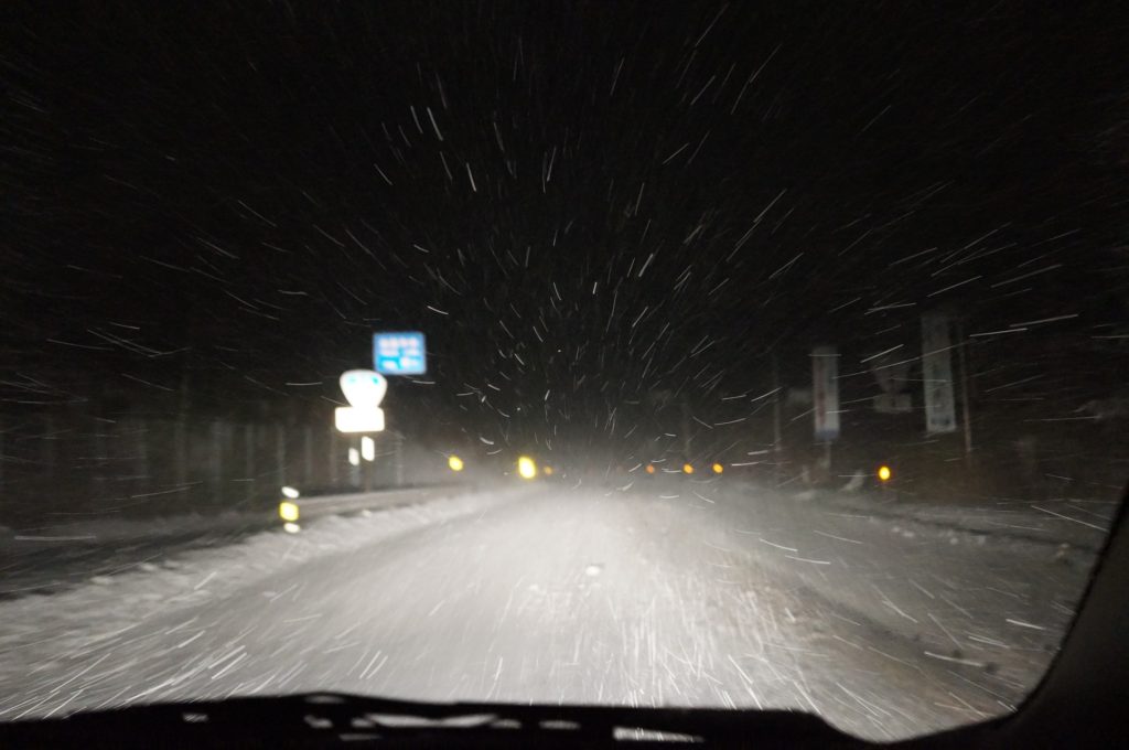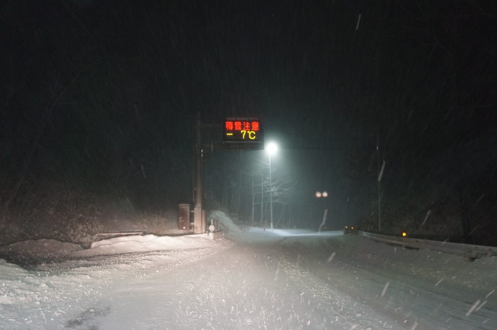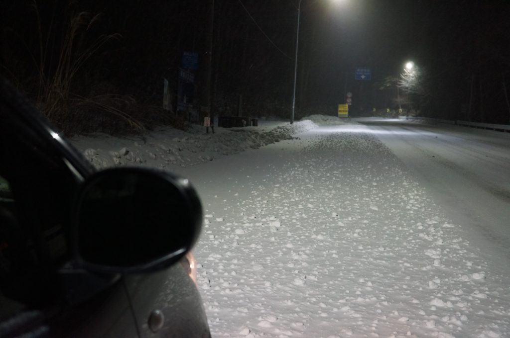 スタッドレスがいるので、マイカーではいけない。