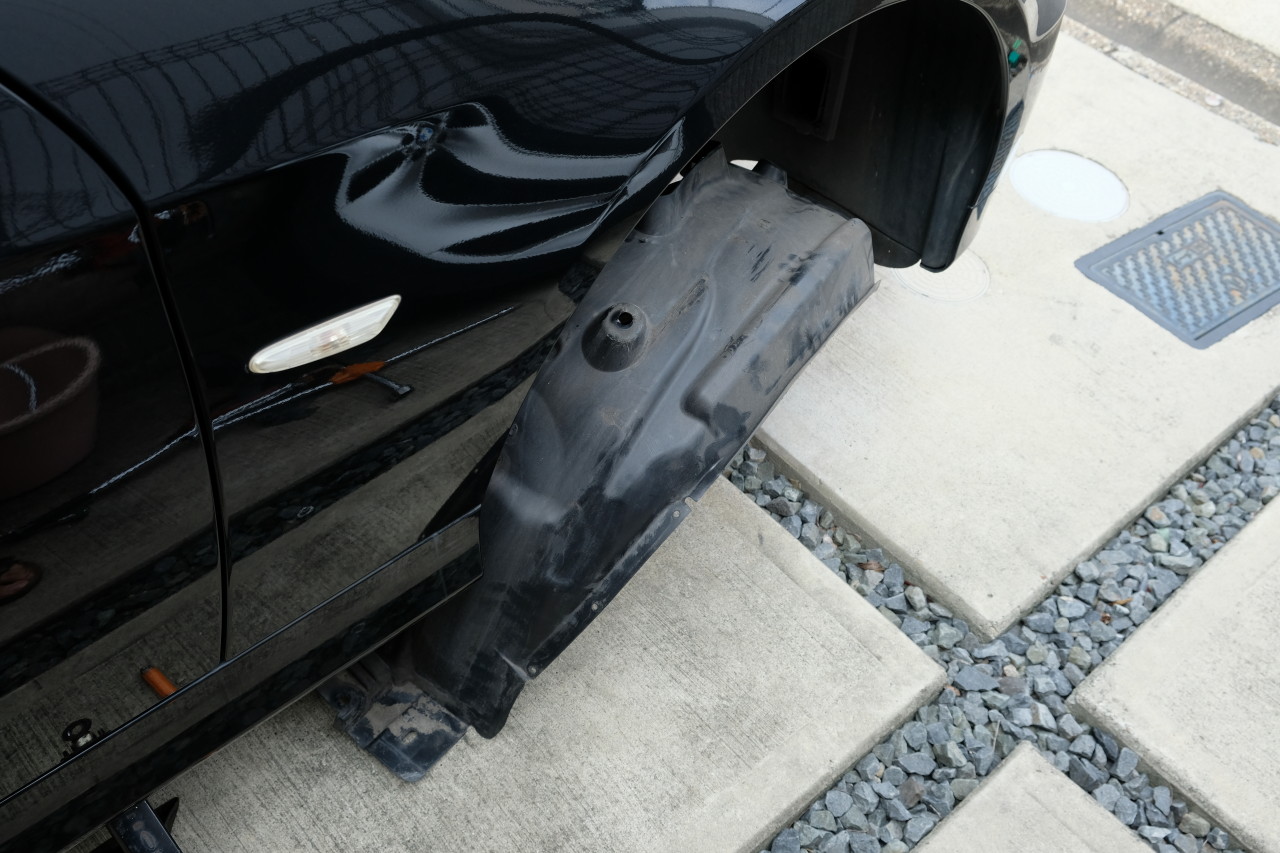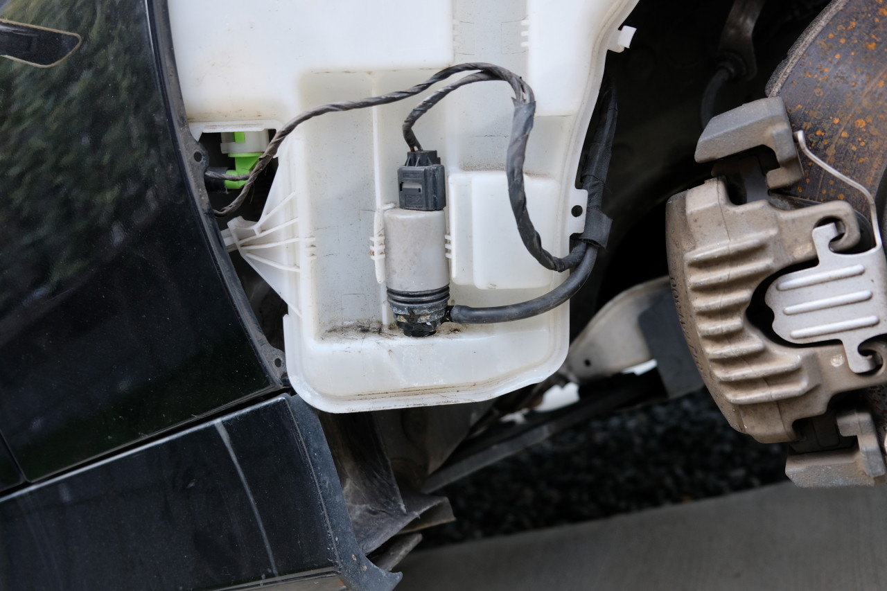 ウォッシャーポンプは、フロントフェンダー内にある。