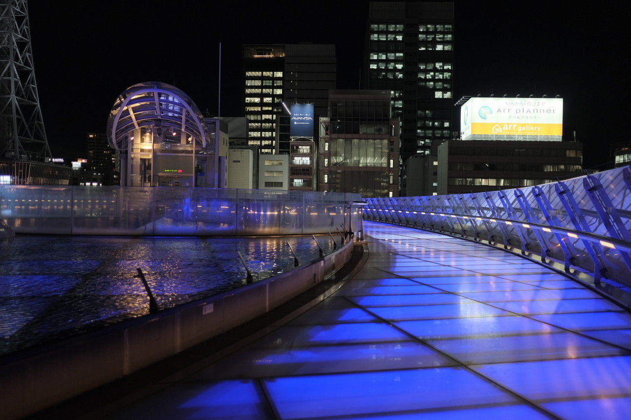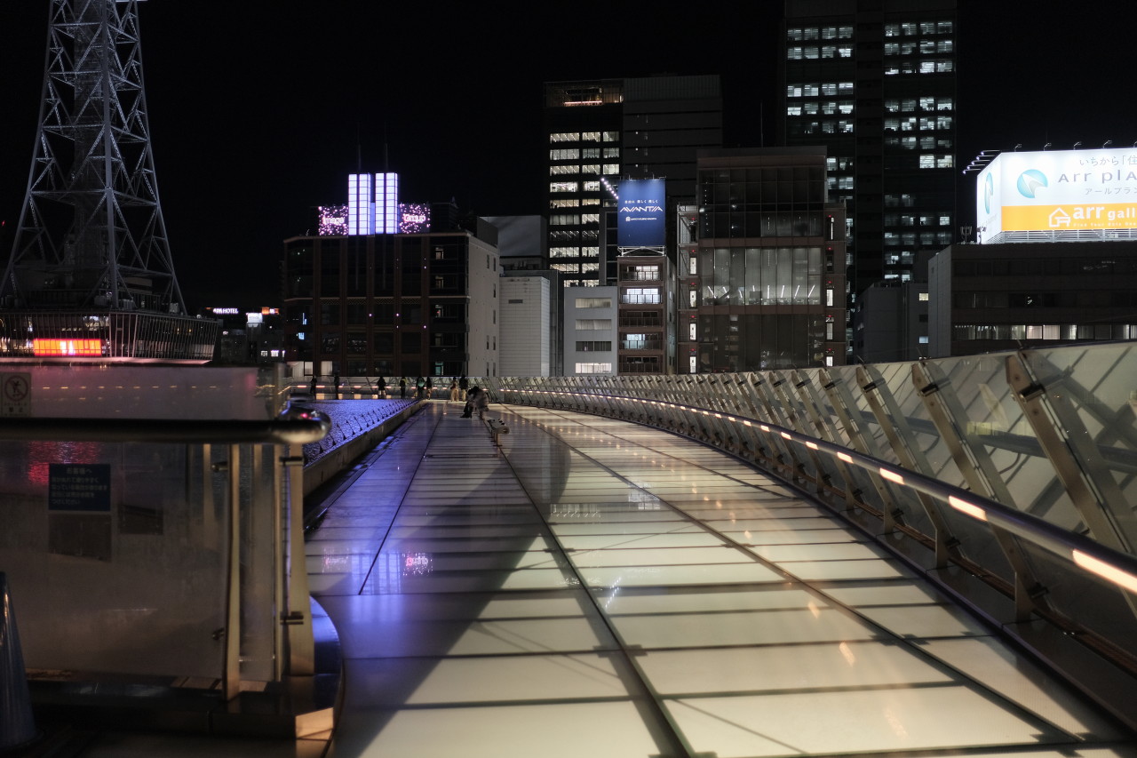 ホーム > 写真館 名古屋・栄 久屋大通を散策。 手振れなし、グレインエフェクトON。味わいがある。 中国では昔のCCDカメラが流行っているとも聞く。 リアルよりもきれいな写真は疲れるしすぐ飽きる気がする。 バスターミナルや商業施設は、まとまって「オアシス21」として整備されている。 水の宇宙船 水が湛えられている ブルーだったり ホワイトだったり、色が変化 複雑なかたちをしている 冬期は、地下がスケート場となるようだ。 カテゴリー:写真館 前の投稿 聖地の麓を探検 次の投稿 冬支度2