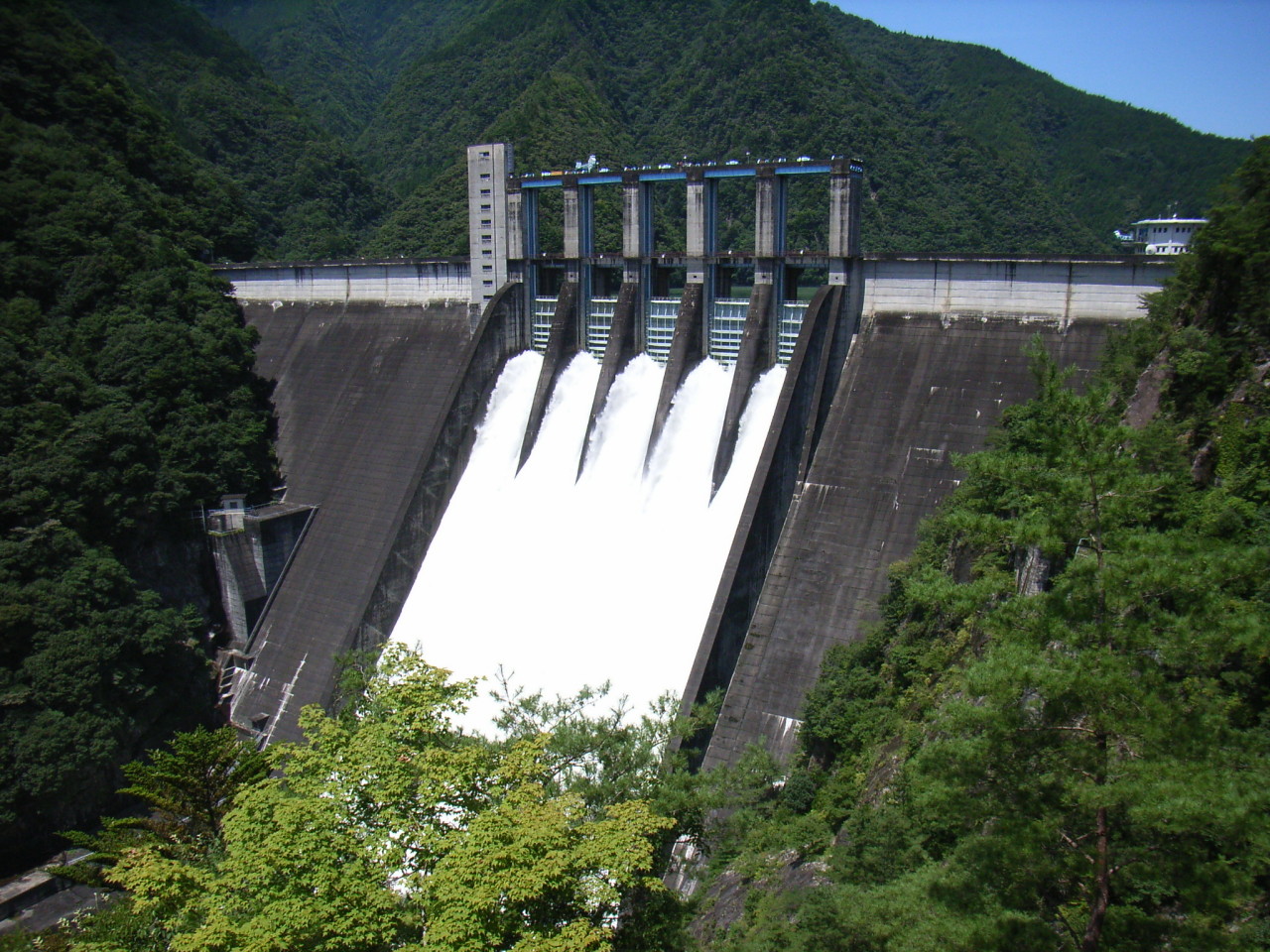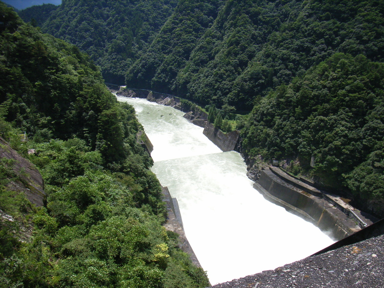 ホーム > ダム巡り 佐久間ダム(’09) ちょうど放流していた。 佐久間町へ進入 水車がお出迎え ゴーっという轟音。放流していた。 ダム湖にはたっぷりの水 盛大だ。 かなりの水量。 トンネルを徒歩で戻り、展望台へ向かった。 漏水だらけで、恐ろしい雰囲気 岩肌が露出している。建築時からの遺構だろう。 展望台へ到着。 まさに特等席 取水塔付近は打って変わって静か。 カテゴリー:ダム巡り 前の投稿 HG21S(10,000km) 次の投稿 日出生ダム(’09)