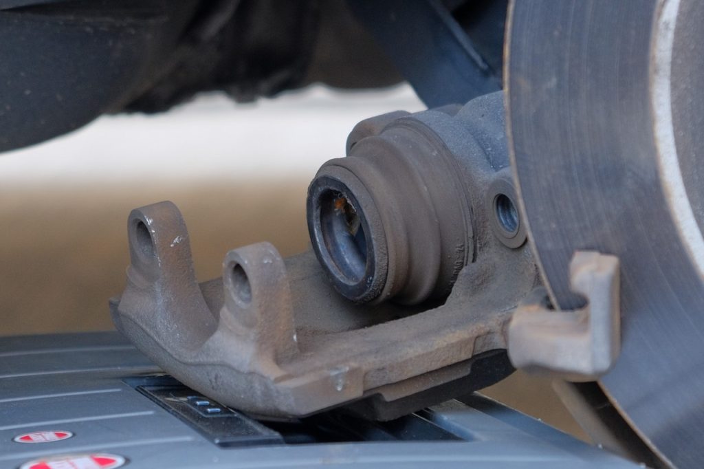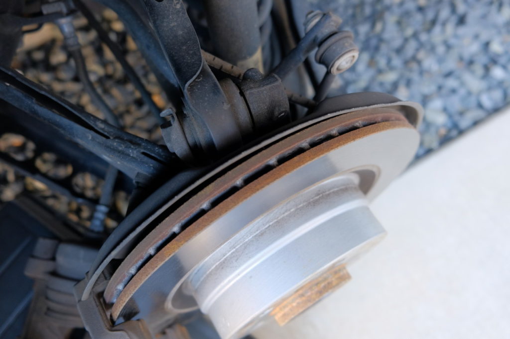 浮動型ブレーキキャリパの正しい動きがこれにより阻害され、片減りに繋がったのかもしれない。
