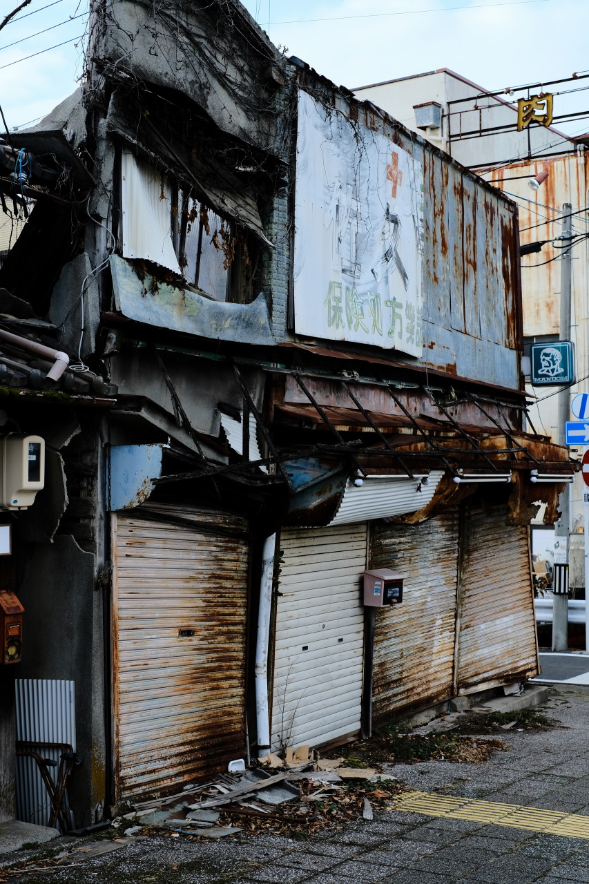 商店街は活気を見出しつつある。一方、朽ちてゆくところも増えている。