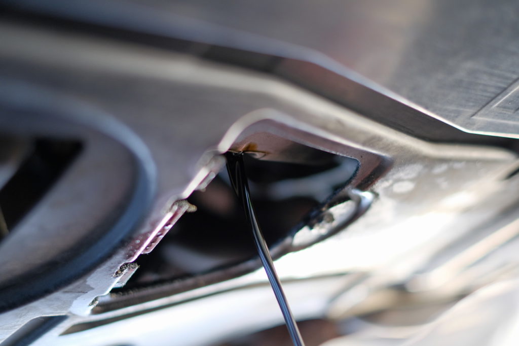 エンジンルーム内で1滴も垂らすことなく交換できる。