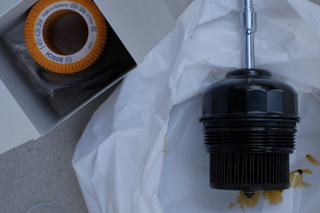 オイル下がりで結構な頻度で補充しているので新油効果があるものと思って過ごしていたけれど、いい加減重い腰を上げて交換することにした。