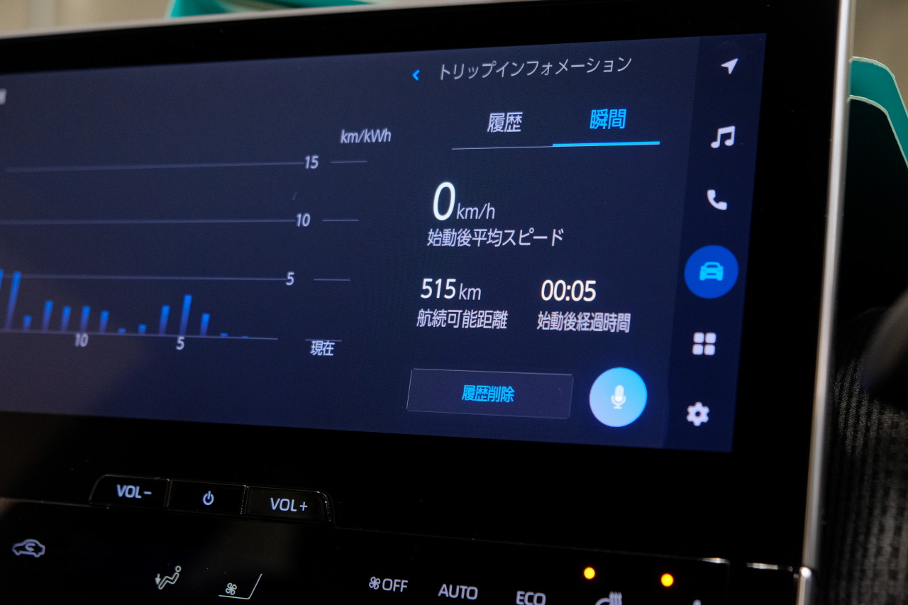 走り出す前に、エアコンをAUTOで作動させていたら一気に100km分減った。
