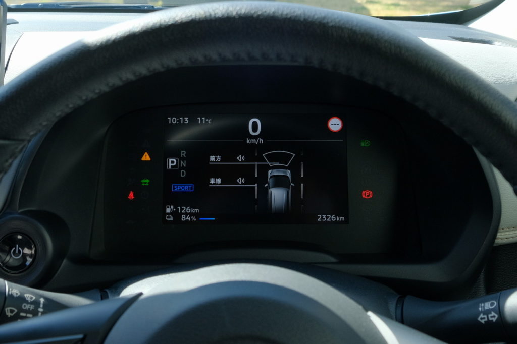 メーターはお決まりの全面液晶。目の前にスマホアプリが表示されている感覚で最高級につまらない。