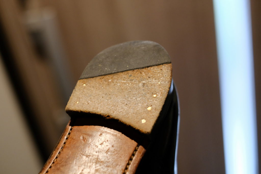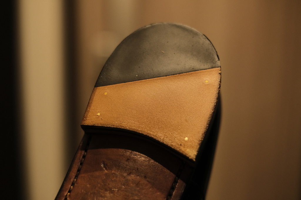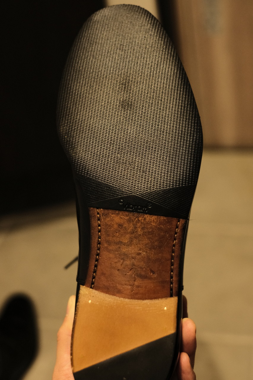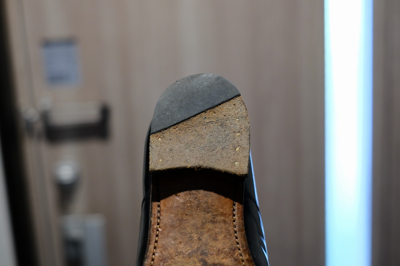 レザーソールが削れてきて、100均の滑り止めを貼ってなんとか過ごしていたが、それも直ぐにズレてしまい使い物にならなくなっていた。