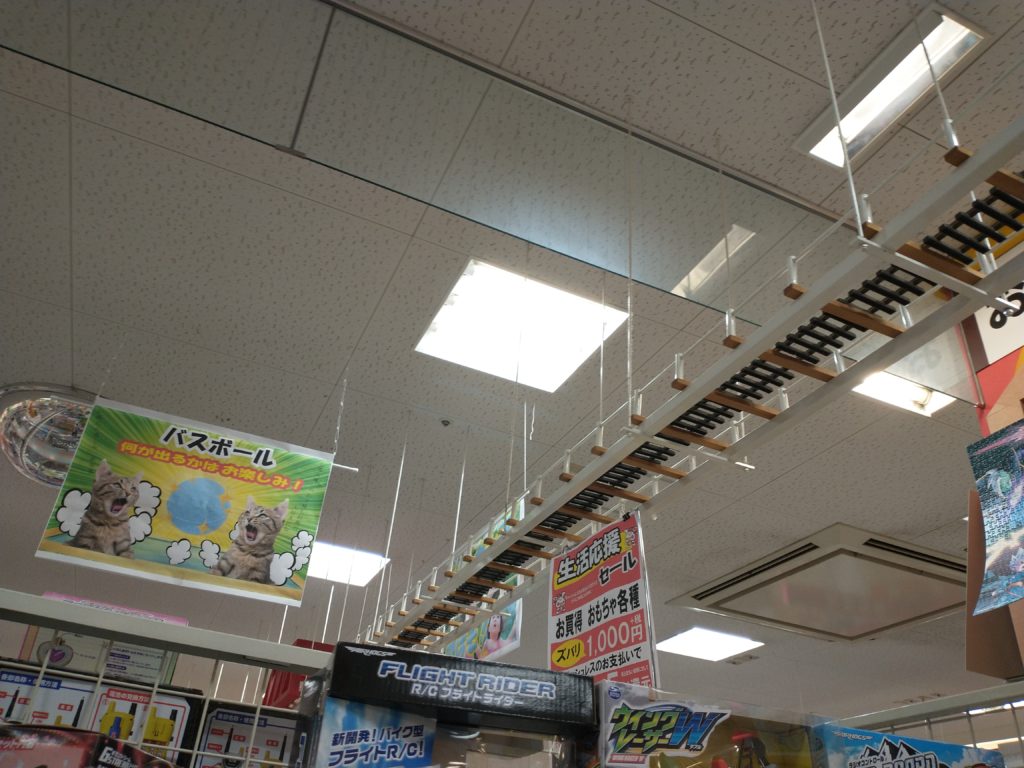 ここのおもちゃコーナーには、天空に鉄道が走っている。