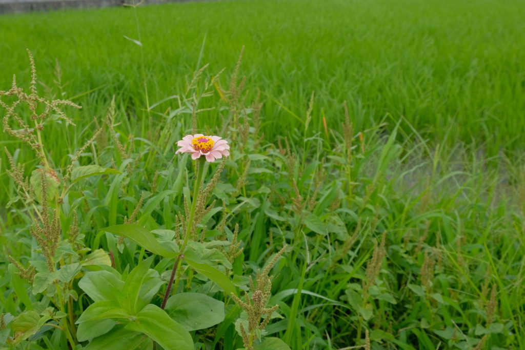 水を湛える田んぼに数輪の花が目に留まった。