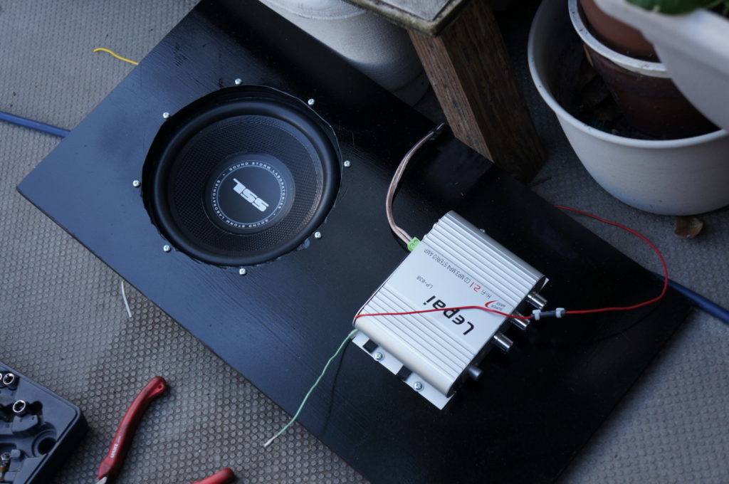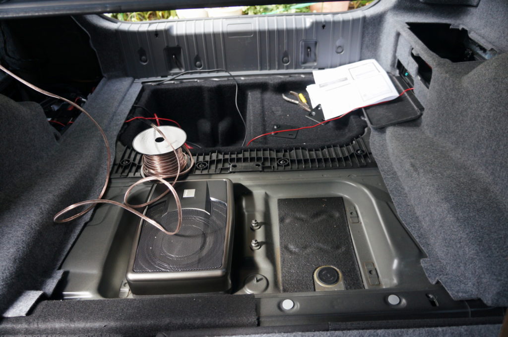 これまで、自作のウーファーを見よう見まねで作りトランクに載っけていたが機能していなかった。