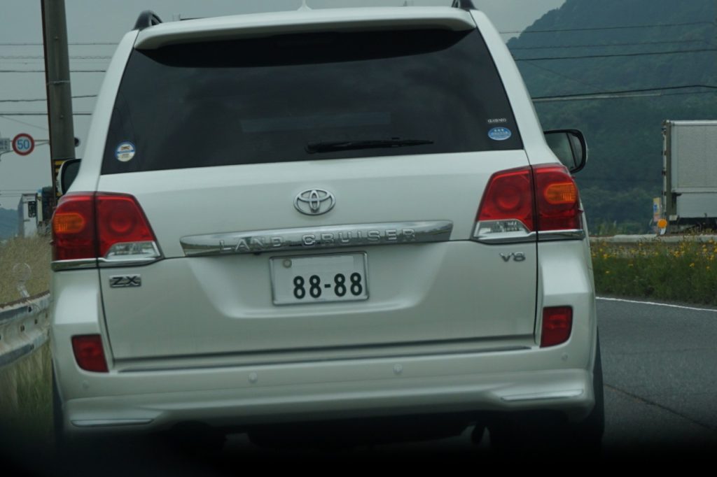 ランクルと、黒いプリウスにおおい。