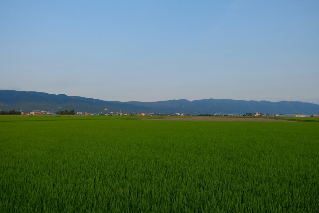 レンコン畑から更に西に向かうと、田んぼが広がる。