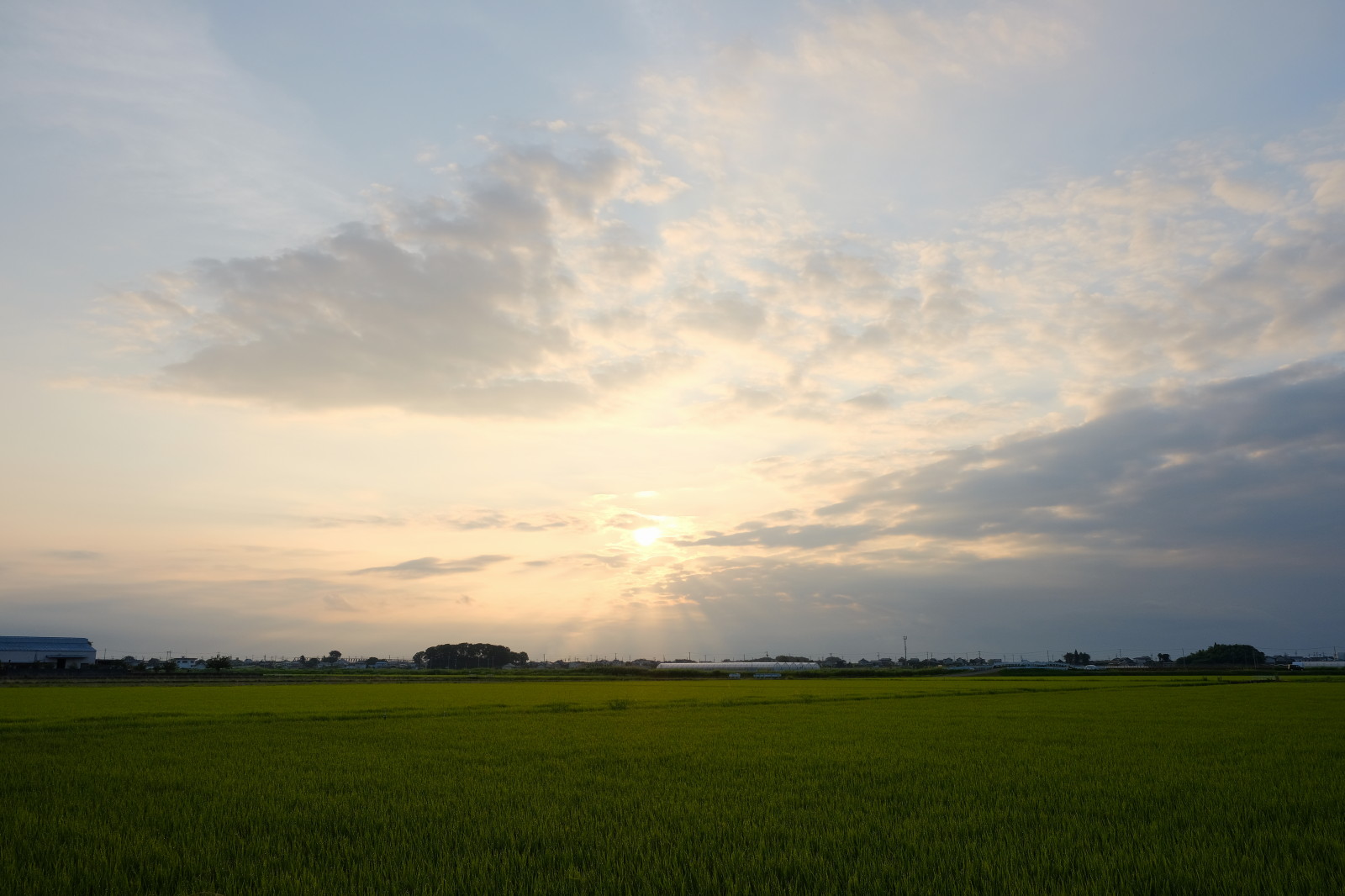 真夏の朝、落ち着いた静かな平野。