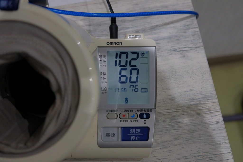 血圧測定コーナーがあったので血圧を測定し、健康であることを確認した。