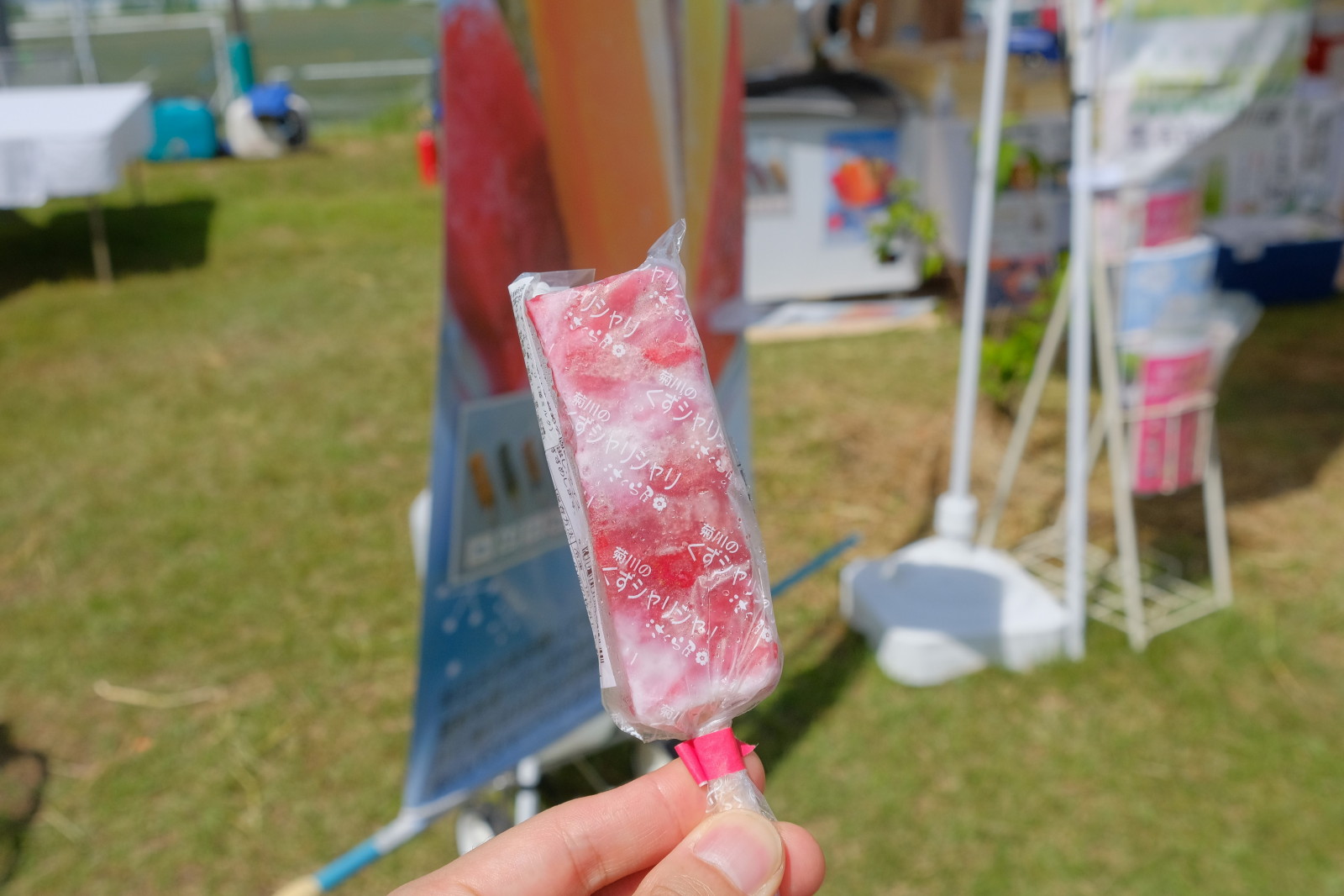 地元の町はアイスクリームなどの地場産品を販売していた。