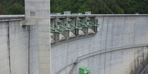 福井県大野市にあるロックフィルダム。 電源開発がキレイに整備して管理している。 資料館