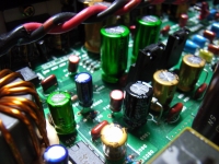 基盤上がカラフルになりました(笑) 交換後 なんとなくノイズが減り、音がまろやかになった気がします。電解コンデンサーは消耗部品だし新品に交換したこと自体に価値があるってことで良しとしときますw 追記 [2007.1 現在] アンプは元気なのにヘッドユニットの選曲ツマミが、壊れました。 次曲行きたくても行けなくて早送りになったり無反応だったり。 触るたびイライライライラ…(他事でもイライライライラ…) もう潔く心機一転、mp3 対応デッキに買い換えます。 手術して直そうとする気力はもう、ありませんです……。 合掌 |